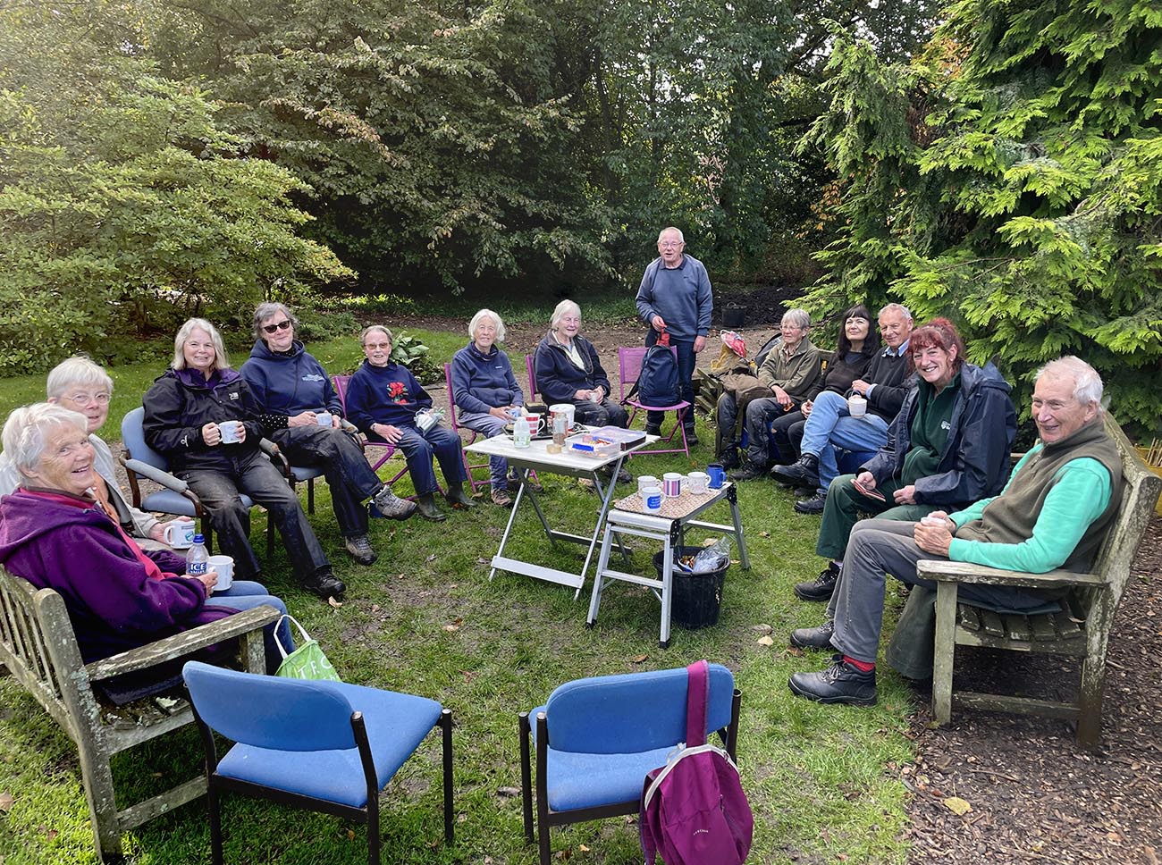 Usually about 15 of us meet up around 8.30am for the morning’s tasks, such as clearing an overgrown area or planting spring bulbs. Beverages and biscuits are provided midmorning, when we take a well-earned break to admire our results! We then work through until 12.30. From time to time we also have little lunch celebrations.